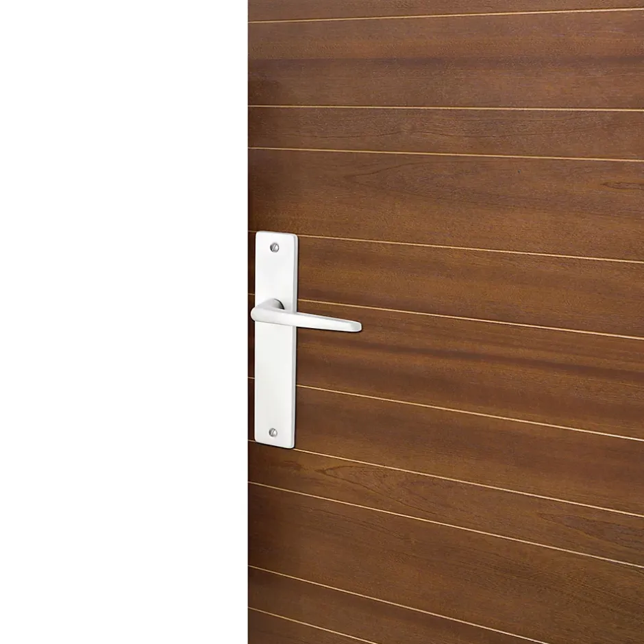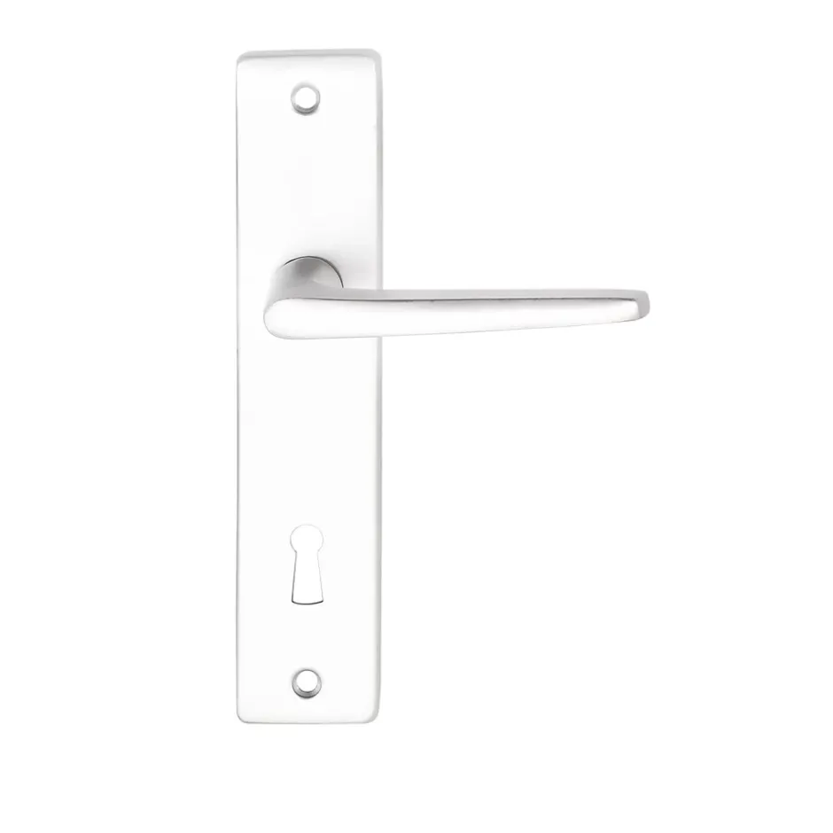 Ensemble poignée sur plaque rectangulaire serrure Colan effet argenté satin gris L.106mm x l.39.8mm entraxe 165mm