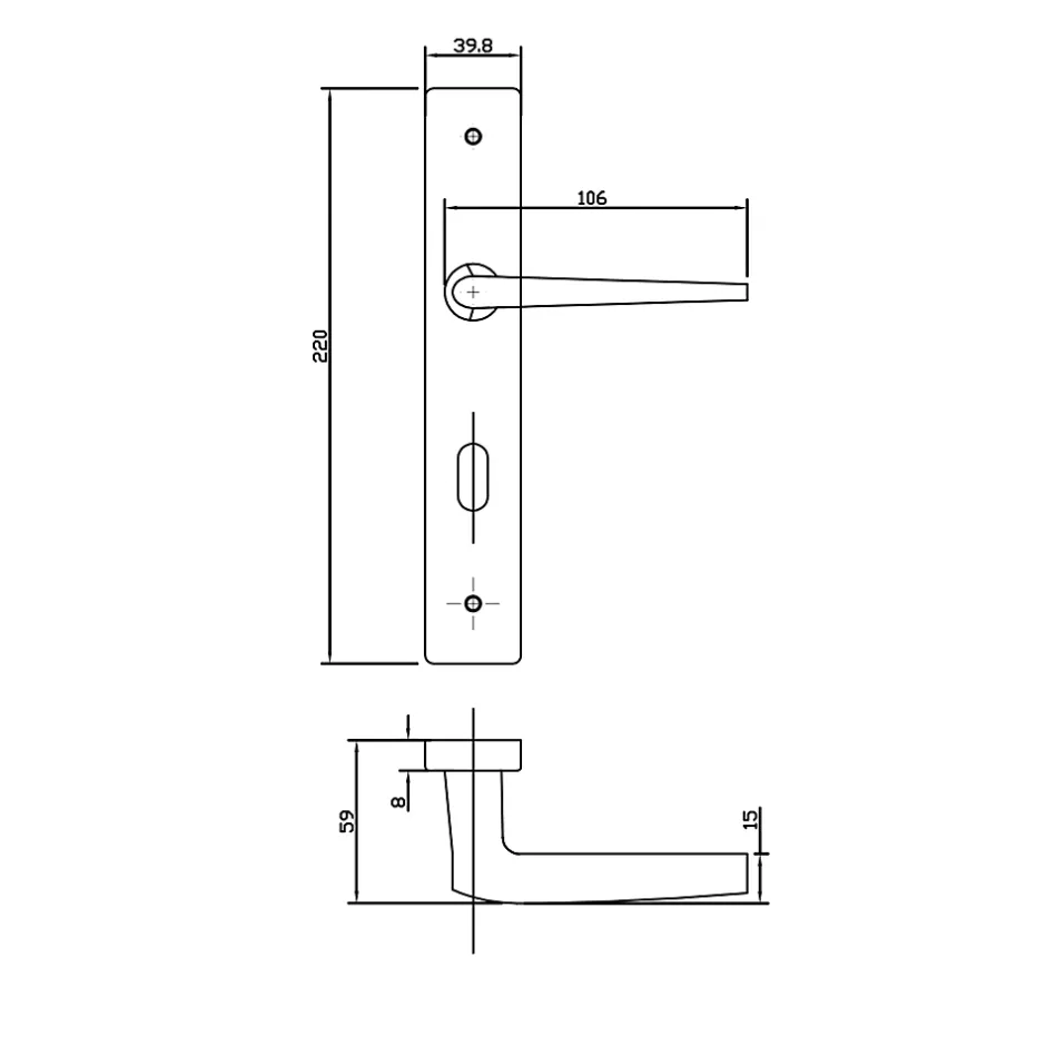Ensemble poignée sur plaque rectangulaire serrure Colan satin blanc L.106mm x l.39.8mm entraxe 195mm