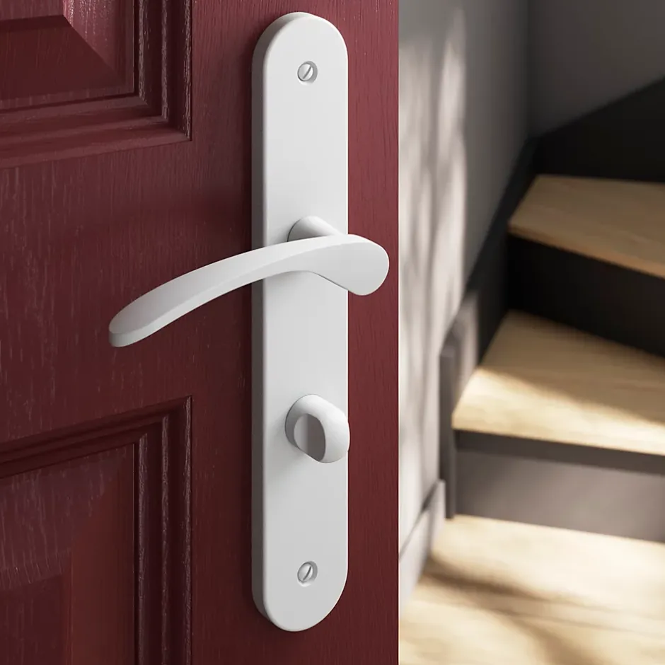 Ensemble poignée sur plaque rond à condamnation GoodHome Beare mat blanc L.110.5mm x l.40mm entraxe 195mm