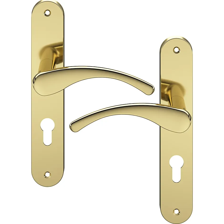 Ensemble poignée sur plaque rond GoodHome Ruis effet laiton doré L.138.5mm x l.40mm entraxe 195mm