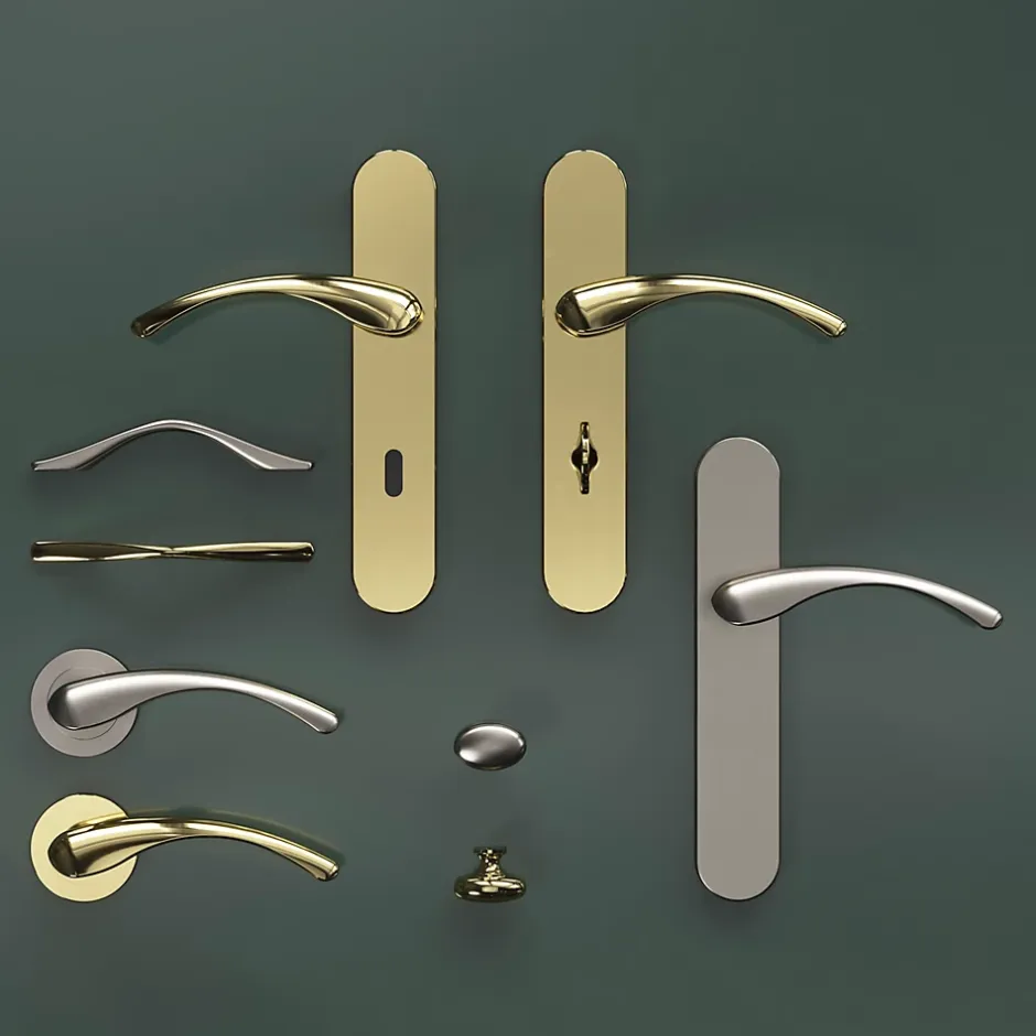 - Disponible en plusieurs finitions, cette poignée de porte sur rosace peut être associée à des poignées et des boutons de meuble de la même gamme pour créer un style coordonné
