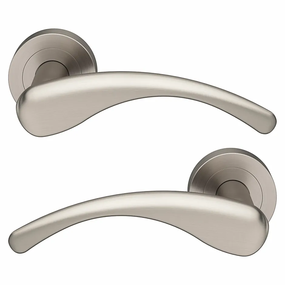 - Disponible en plusieurs finitions, cette poignée de porte sur rosace peut être associée à des poignées et des boutons de meuble de la même gamme pour créer un style coordonné