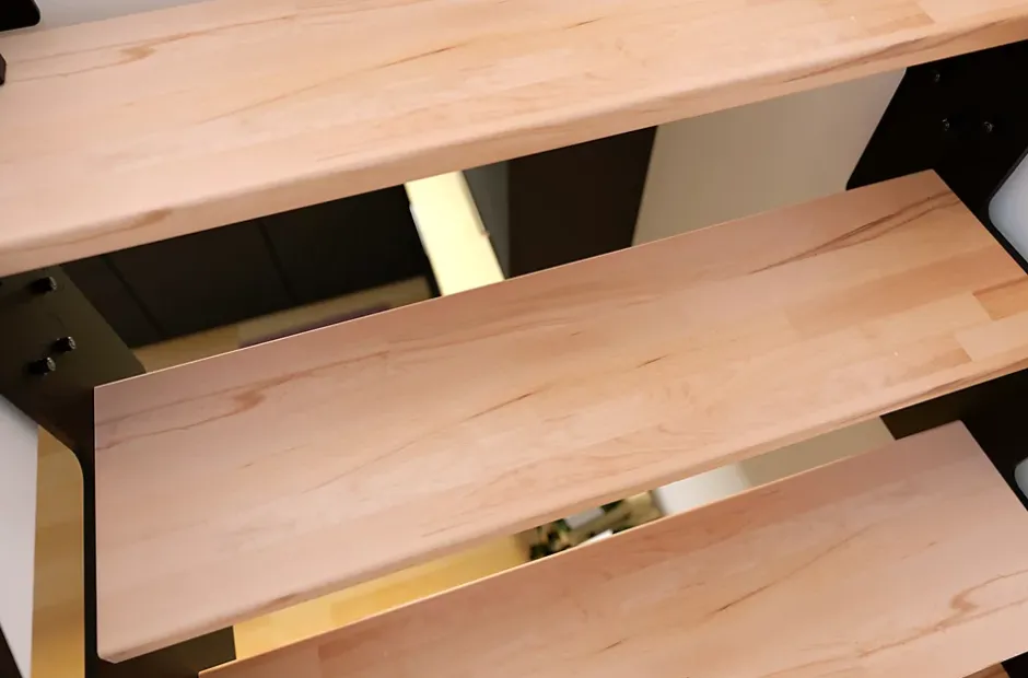 Escalier crémaillière droit Costa rampe acier marche hêtre l. 2.75 m