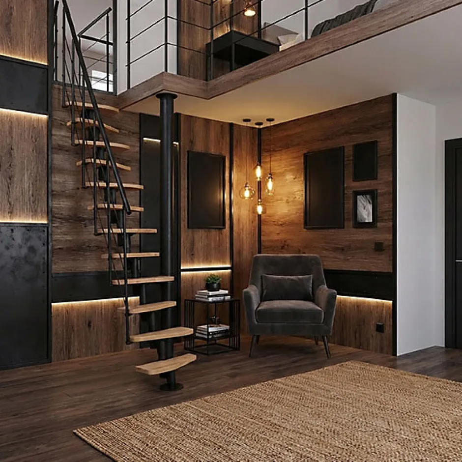 Escalier droit 10 marches - Hauteur à franchir 1.89 à 2.49m- Largeur 65cm - Structure noire et marche hêtre - NIZZA60/I/NH-10-Matisere Online