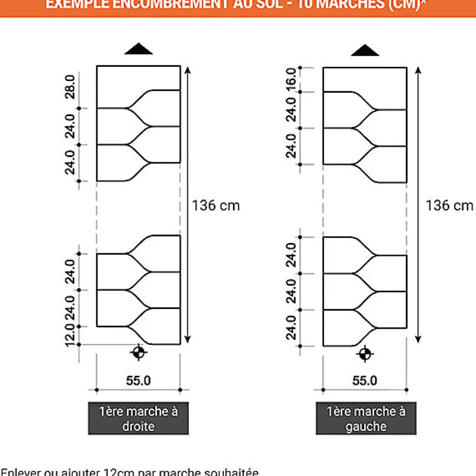 ESCALIER DESIGN- L’escalier d’intérieur à pas japonais est une solution design et pratique qui allie modernité et gain de place avec son faible encombrement.- Les marches confère un plus grand confort d’utilisation qu’une échelle de meunier, idéal pour des appartements avec une faible surface habitable.- Le design asymétrique des marches apporte une touche zen à votre intérieur et permet de conserver une profondeur de marche confortable.ESPACES REDUITS- Escalier d’intérieur d’une largeur de 0.61 mètres pour des habitations avec des espaces réduits.- Passer d’un étage à un autre ou un espace en hauteur comme dans des appartements parisiens qui ont une surface réduite.ESCALIER REGLABLE- Régler la hauteur en faisant varier le nombre d’entretoise sur la structure au moment du montage.- Espace entre marches réglable de 20 à 24cm, conseillé 21cm pour une utilisation confortable.- 1ère marche à une hauteur fixe de 20cm – Réglage mm par mm à l’aide du système intégré entre les contremarches.- Pour une configuration spécifique, n’hésitez pas à nous adresser vos côtes (hauteur sous plafond et épaisseur de dalle) et photos de l’emplacement de l’escalier. EXEMPLE DE CALCUL – Pour une hauteur à franchir de 2.97m avec l’escalier 12 marches :1ère marche fixe à 21cm et 11 marches avec un espacement de 23cm : 274cm.Reste une hauteur idéale entre la dernière marche et le sol supérieur de 23cm : 297cm STRUCTURE BLANCHE- Structure en acier avec une peinture mate et anti-rayures.- Traitement avec une poudre époxy qui ne dégage pas de solvant toxiques.- Colonnes verticales en acier peint de la même couleur que la structure.MARCHES ET MAIN-COURANTE BOIS NATUREL- La conception des marches offre une grande résistance mécanique et une stabilité élevée pour un escalier avec une grande durée de vie.- Main-courante et marches en