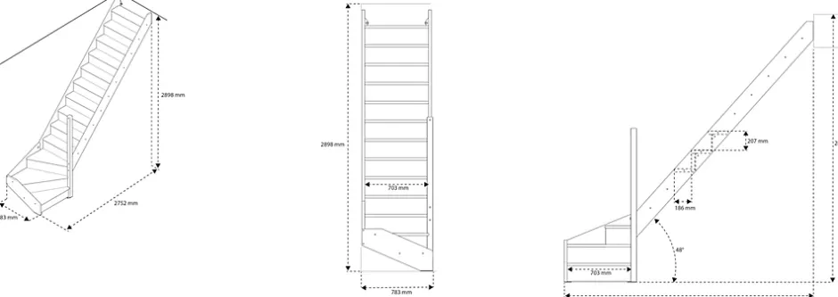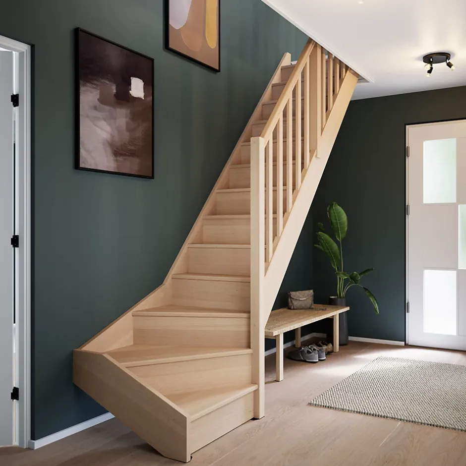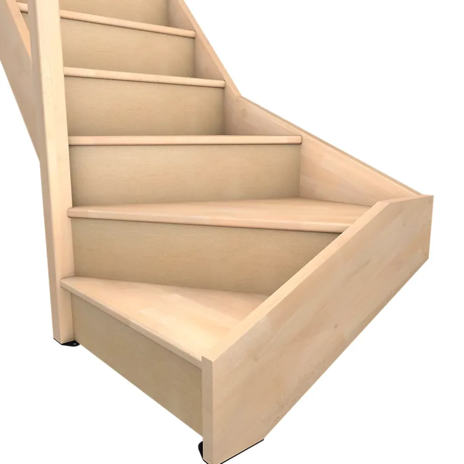 Escalier quart tournant droit Fortia hêtre coloris naturel 13 marches Siderno avec contremarches