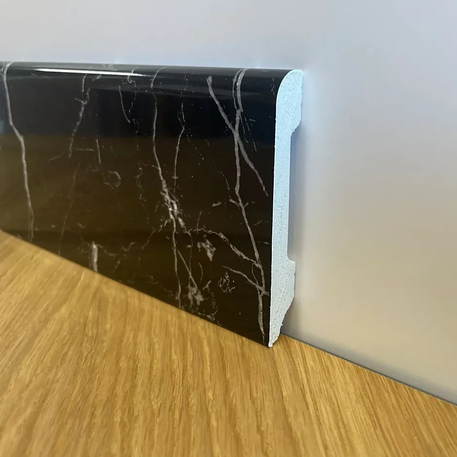 104ml de BC Plinthe Polie NERO MARQUINA 85x14x2000mm en POLYMÈRES – Polystructuré3,99 € le mètre linéaire TTC et transportNos plinthes HARDPOLYMER sont des produits adaptés à tous les environnements qui ont besoin de quelque chose de très résistant aux chocs, pratiquement inrayables, ils sont indiqués dans l’achèvement de la boiserie et coordonnés sur les portes ou les murs de la même couleur car ils peuvent être laqués ou émaillés avec très quartz commun ou peinture lavable, facile à poser et à couper, léger et complètement aseptique, totalement recouvrable et masticable. POLISTRUCTURED (ou Duropolymer) est un matériau très léger qui ne souffre d’aucun type d’humidité, ne nécessite pas de clous et se fixe facilement avec notre colle dédiée.1. Matériel d’appuiLe matériau de support utilisé – DUROPOLYMERQualité CERTIFIÉE et garantie.NB les plinthes n’arrivent généralement pas « certifiées » aux extrémités et, en plus de devoir être coupées, elles peuvent également présenter de petites imperfections dues au transport (les têtes ne sont généralement pas emballées) ou au cycle de peinture (la peinture peut avoir coulé sur la tête qui empêche une adhérence normale), il est donc normal de les avoir d’au moins 1 cm d’épaisseur lors de l’installation. Ceci est typique de tous les types de plinthes sur le marché.