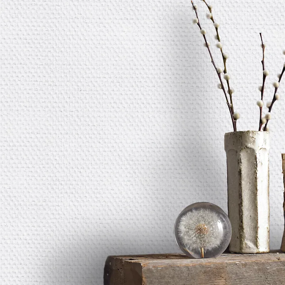 Rouleau fibre de verre protection murale, blanc à peindre Maille brut 25m x 1m, 205g/m². Structure Maille brut neutre parfaite pour couvrir les imperfections de vos murs, les protéger et donner l’effet d’un mur enduit. Peut être repeint en 2 ou 3 couches pour un résultat impeccable. Évitez la peinture à chaux.