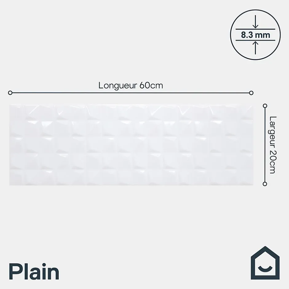 Faïence murale blanc brillant avec relief L.60 x l.20 cm x ép.8,3 mm – lot de 12, GoodHome Plain