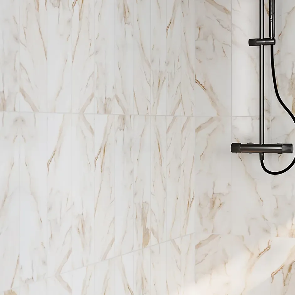 Carrelage mural effet marbre blanc et doré brillant L.60 x l.20 cm x ép.9,4 mm – lot de 9, Goodhome Aruma