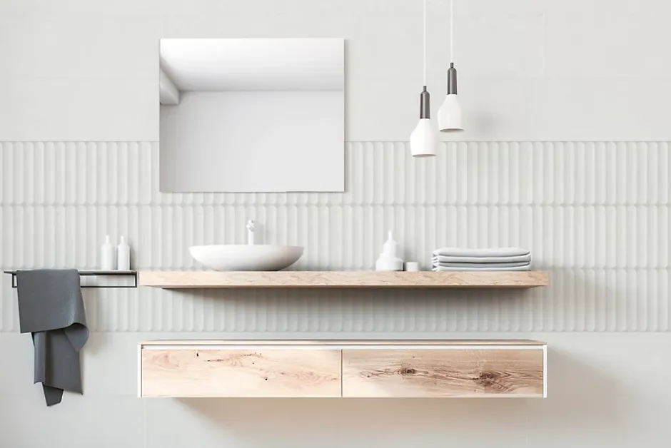 Faïence murale intérieur blanc mat effet cannelures L.90 x l.30 cm x ép.10,8 mm, Astor