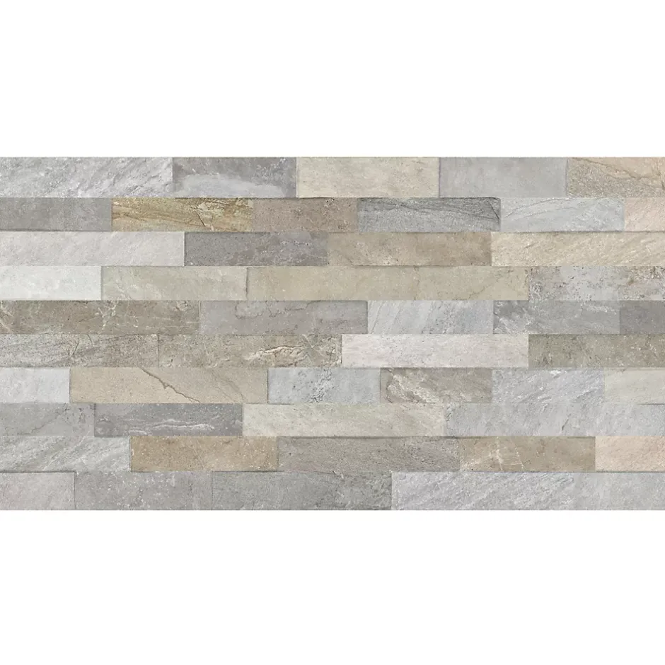 Faïence murale intérieur effet pierre tons gris décor 3D L.60 x l.30 cm x ép.8,2 mm, Quartz 3D