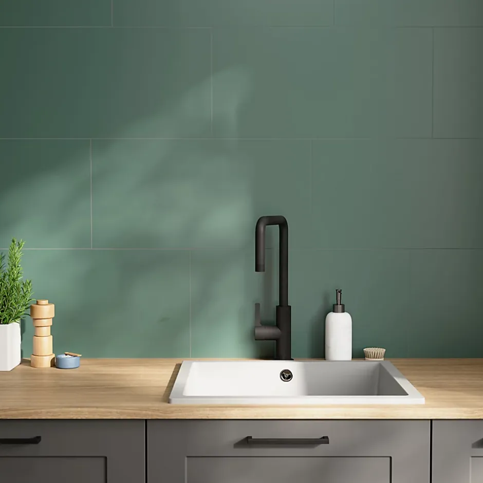 Le carrelage intérieur mural en grès émaillé satiné vert Colville (l) 300mm x (L) 600mm offre une finition satinée douce qui apporte chaleur et sophistication à tous les espaces. Avec ses bords rectifiés, le carrelage Colville garantit un ajustement précis et un rendu élégant et harmonieux qui sublime toutes les pièces.