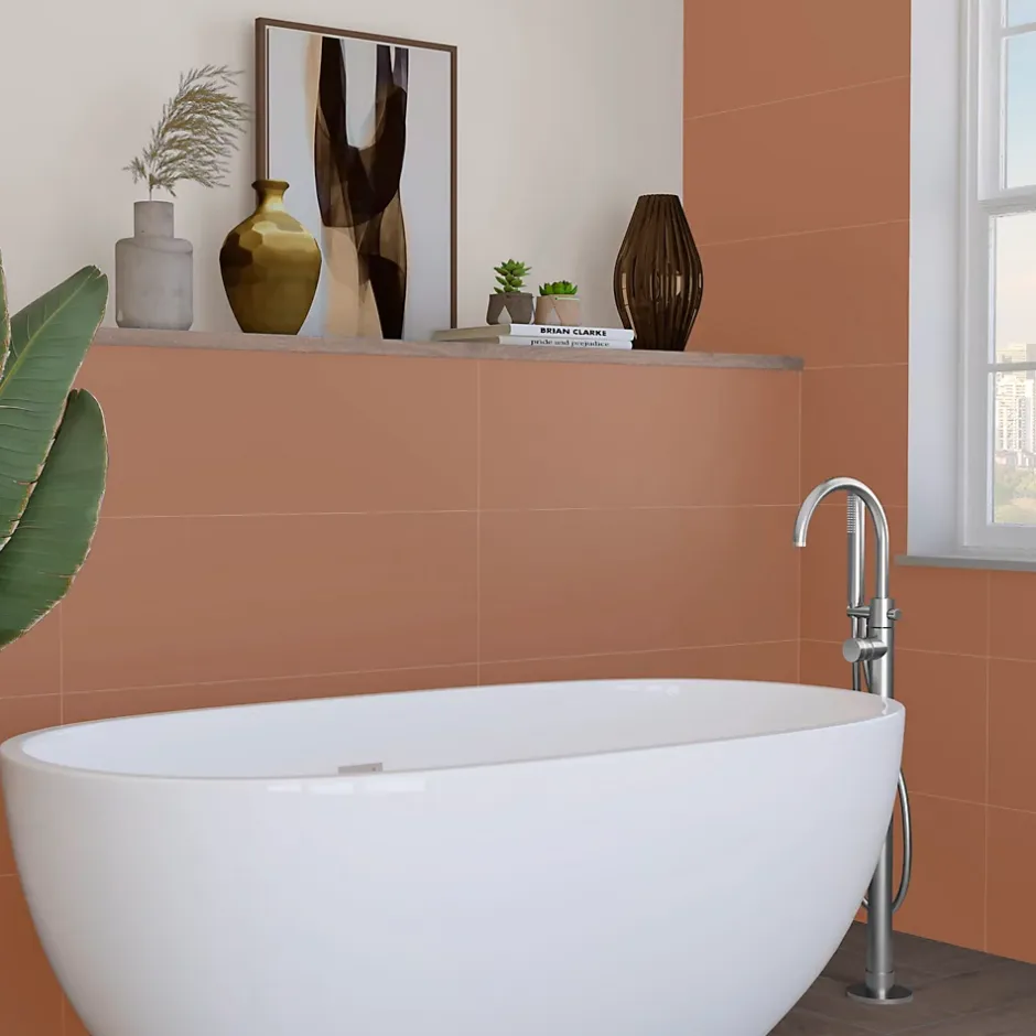 Faïence murale marron terracotta mat L.90 x l.30 cm x ép.10,5 mm, Etile Aspen