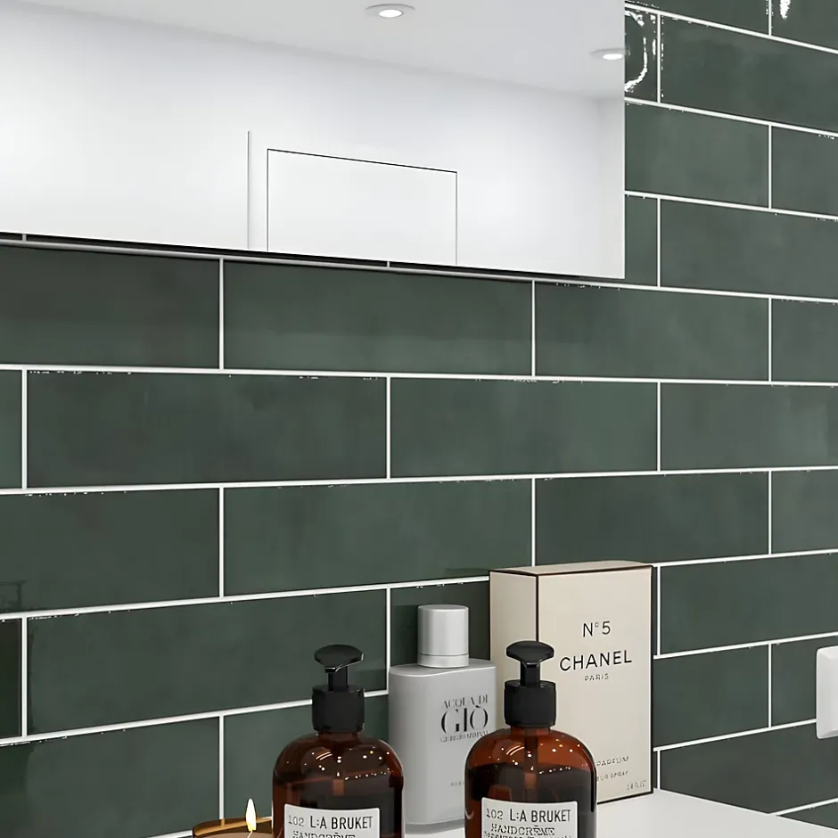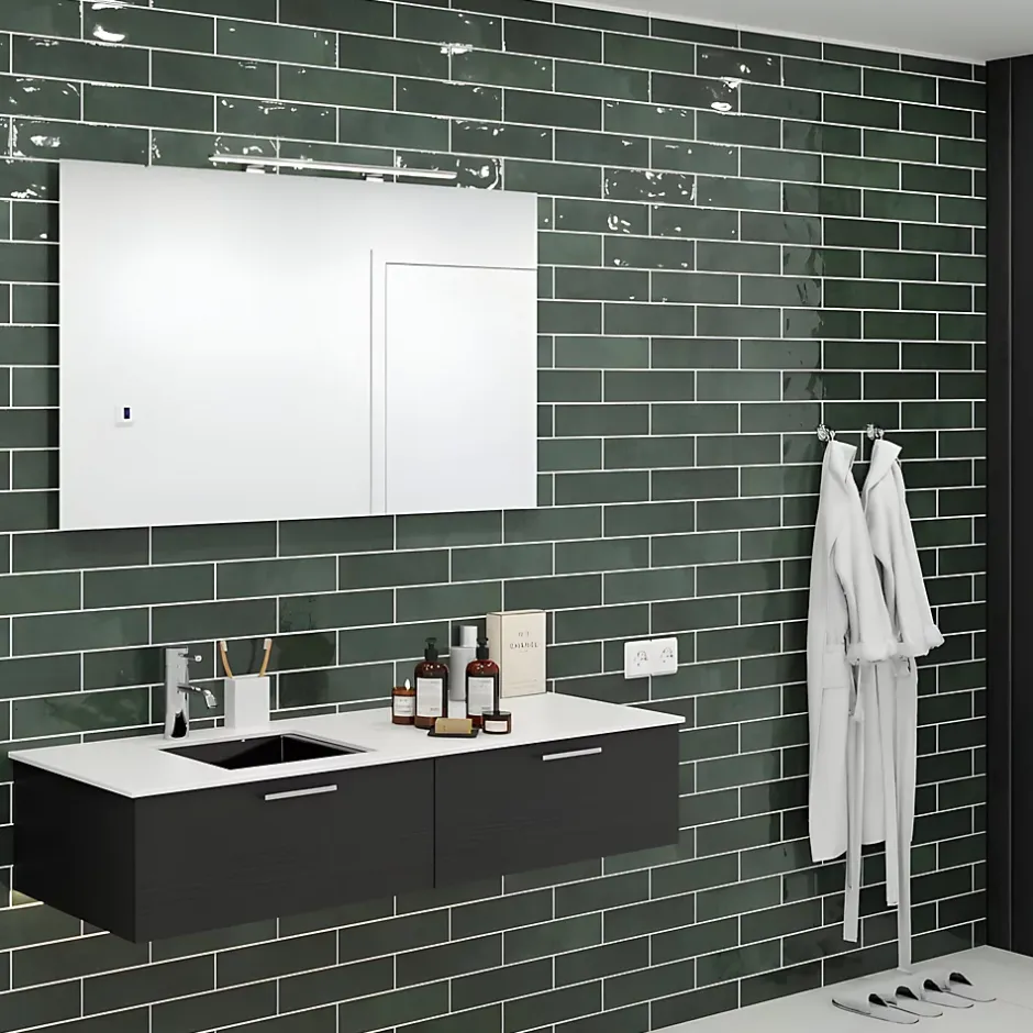 - Carrelage mural intérieur aspect terre cuite coloris vert mat.