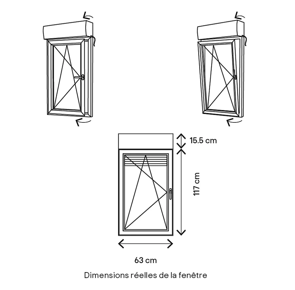 - Le cadre universel permet à la fenêtre de s’adapter à tout type d’installation, et de compenser les variations de dimensions avec votre ouverture