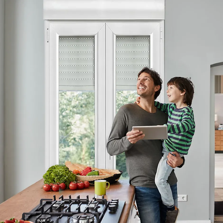 Fenêtre pvc 2 vantaux oscillo-battant avec volet roulant électrique GoodHome blanc – 80 x h.135 cm – Uw 1,2