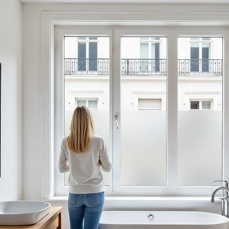- Film dépoli pour vitrage – Idéal pour lutter contre le vis-à-vis et permet de cacher des regards indiscrets, tout en laissant passer la lumière.