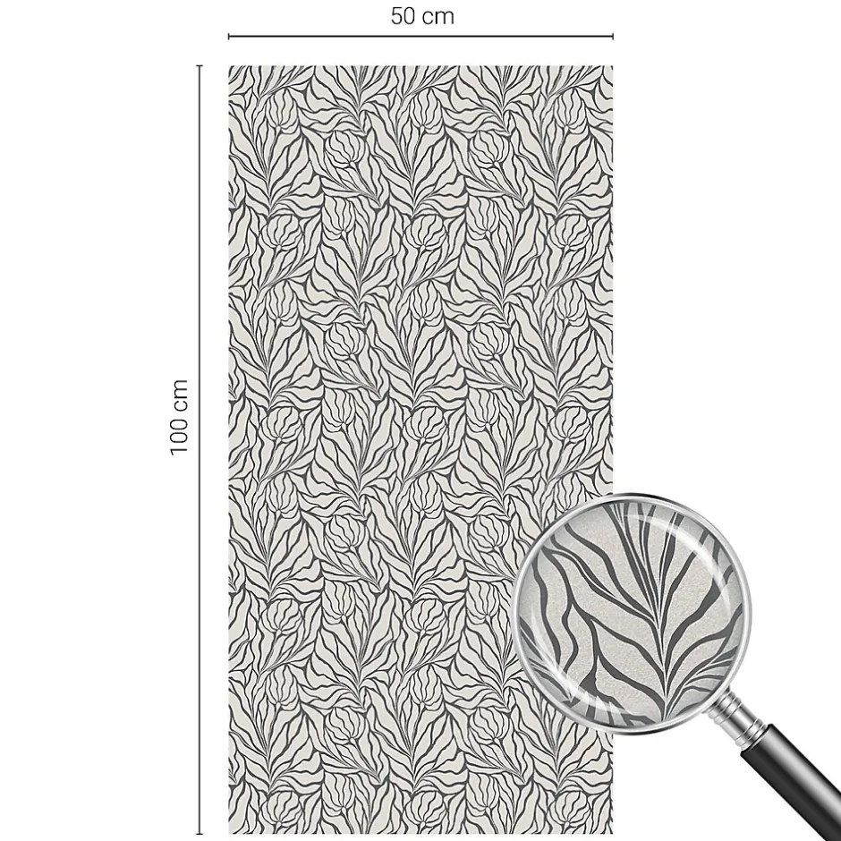 Film dépoli blanc adhésif 50×100 cm décoratif vitrail Feuilles Fleurs 1 rol.-Wallfluent New