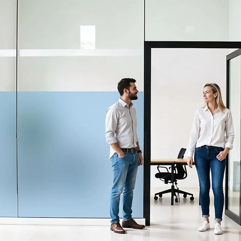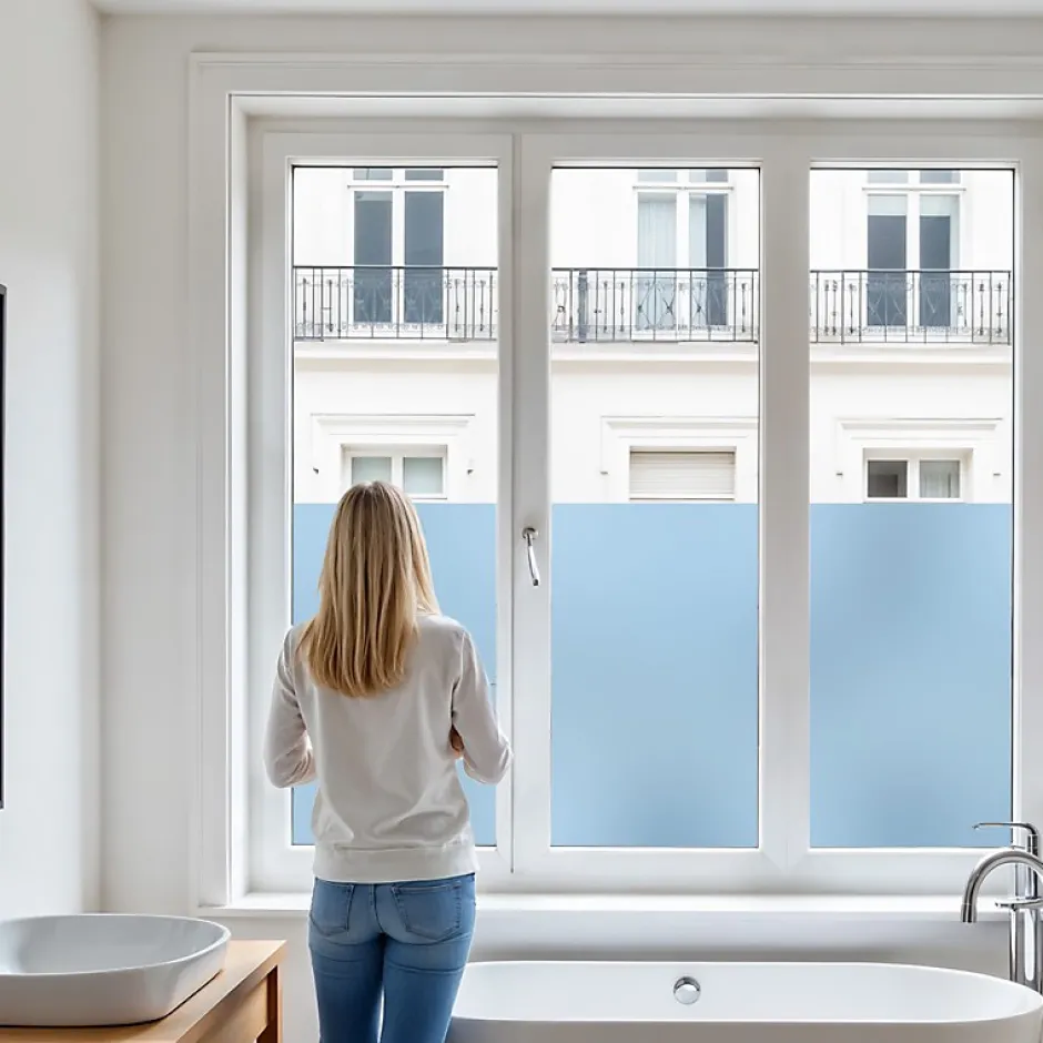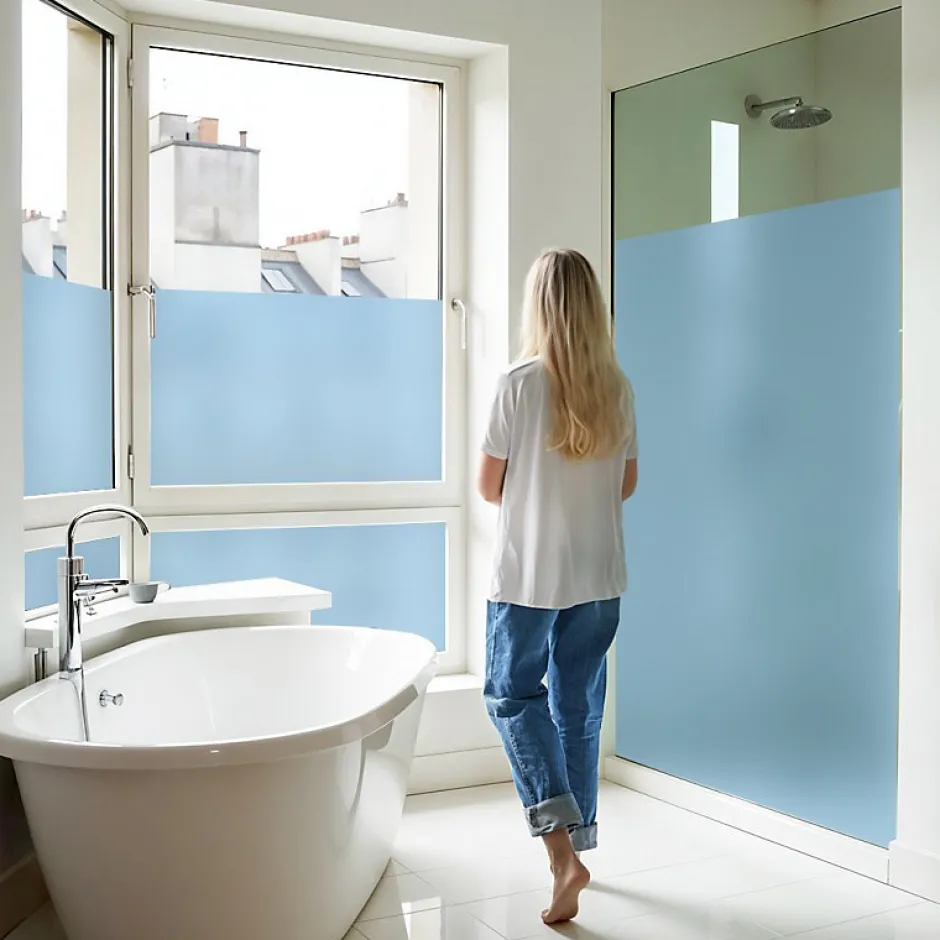 - Film dépoli pour vitrage – Idéal pour lutter contre le vis-à-vis et permet de cacher des regards indiscrets, tout en laissant passer la lumière.