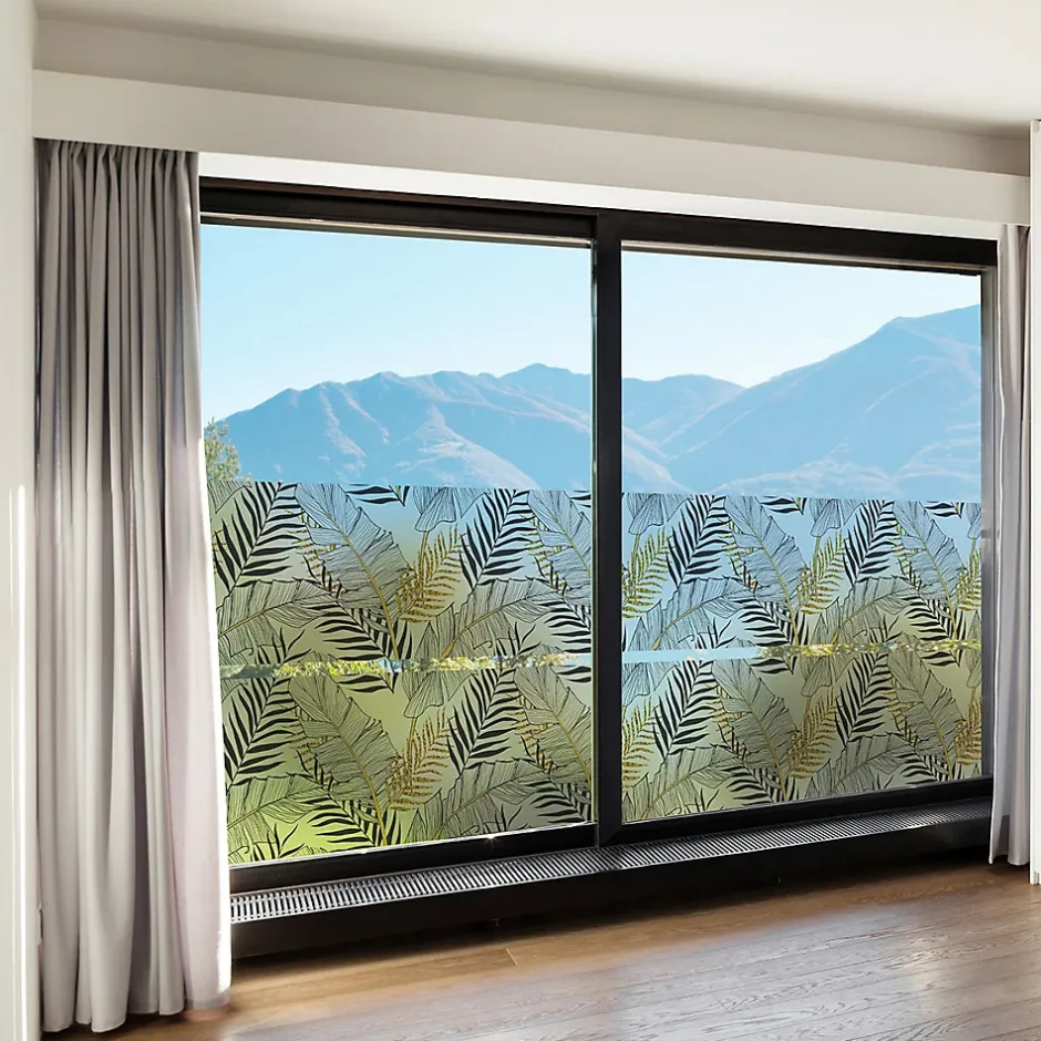 Sticker occultant pour vos fenêtres et votre salle de bainCe sticker représente des feuilles de palmier chicsCe sticker occultant et privatif pour fenêtre mesure H40 x L200 cmVitrophanie – Sticker dépoli translucide privatif pour vitres et fenêtres Bubble free – Pose facile sans bulle d’air Ce sticker occultant dépoli laisse passer une lumière douce et diffuse pour plus de confort dans votre intérieur Il limite la visibilité à travers les vitres et permet ainsi d’obtenir sécurité et intimité, tout en décorant votre maison Il empêche aussi les vis-à-vis de jour comme de nuitUne fois appliqué sur une fenêtre, ce sticker : – absorbera 15 % de la lumière visible – transmettra 85 % de la lumière visible Conseil pour la pose: 1/ Découper la longueur nécessaire (prendre un peu plus large) 2/ Humidifier fortement la vitre 3/ Décoller le sticker du papier support et le positionner sur la vitre humide 4/ Racler du centre vers l’extérieur pour retirer l’eau et les bulles d’air 5/ L’humidité permet de le déplacer pour une position parfaite 6/ Laisser sécher 7/ Couper au cutter les bandes qui dépassent de la vitre Durée de vie: 5-8 ans Où coller cet autocollant déco occultant ? Les idées Déco Ambiance Sticker: Ce sticker occultant trouvera facilement sa place sur les baies vitrées, les fenêtres de salle de bain, cuisine, toilette, chambre, et autres fenêtres de la maison, les rambardes vitrées extérieures et intérieures, et même sur les portes de douche Ce sticker occultant peut être aussi utiliser en milieu professionnel: pour les vitres de bureaux, salle d’attente, vitrines de magasin, ou toute autre vitre extérieureL’adhésif occultant fenêtre vous permet également de préserver votre intimité lorsque vous êtes à l’intérieur de votre maisonLe sticker occultant vitre est idéal posé sur une baie vitrée pour masquer le vis à vis dans votre bureau Les stickers occultants fenêtres s’intègrent aisément dans tous les intérieursCe