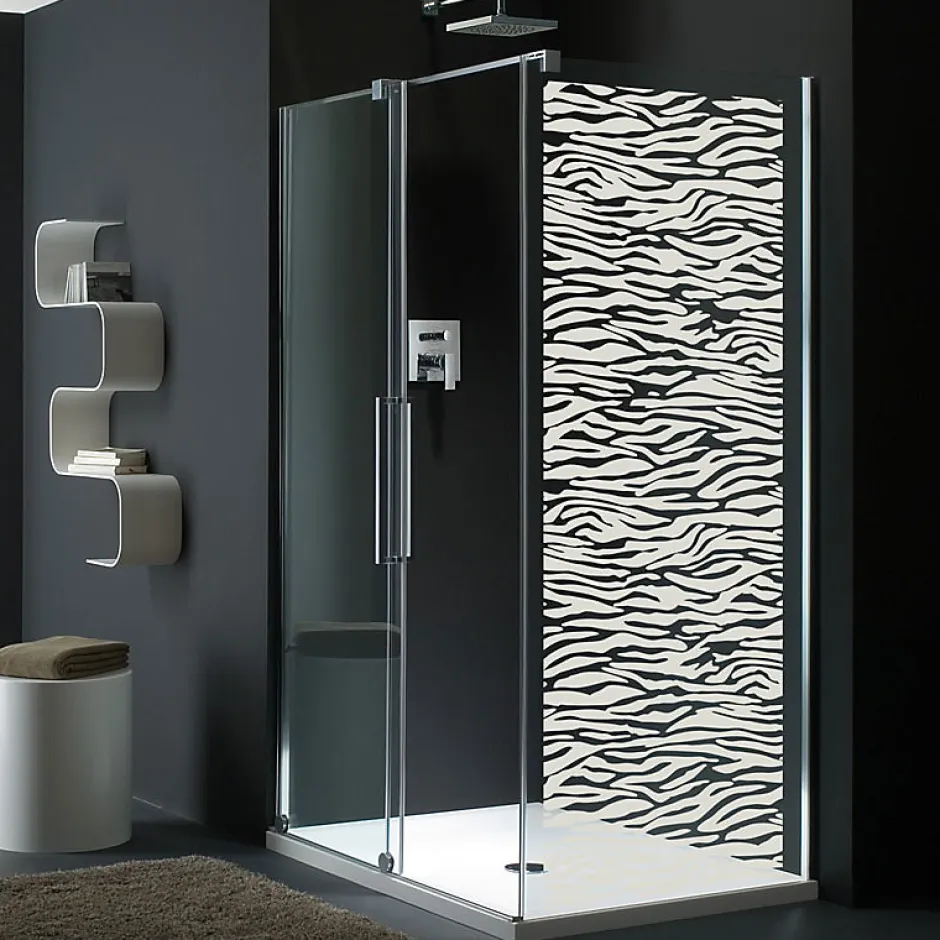Taille du produit : 150 x 45 cm Des stickers portes de douche pour votre déco Avec les stickers muraux pour salle de bain et ce Sticker porte de douche Motif peau de tigre 150 x 45 cm, vous donnera des idées de décoration Où coller cet autocollant déco ? Cet autocollant déco porte de douche sera parfait votre salle de bain C’est le sticker idéal pour décorer vos meubles de salle de bain, les miroirs, le carrelage des murs ou tout autour du bain ou de la douche Grâce à ce petit effort de décoration murale, votre salle de bain sera bien plus design et attrayante Matériau: Vinyle sablé satin Crystal (spécial pour porte de douche et vitre) Les conseils pour bien poser votre Sticker porte de douche 1 Humidifier la vitre2 Décoller le papier support3 Placer le sticker sur la vitre (l’humidité permet de faire des ajustements)4 Laisser sécher5 Retirer le film de transfert Voilà votre porte de douche donne de l’originalité à votre salle de bain