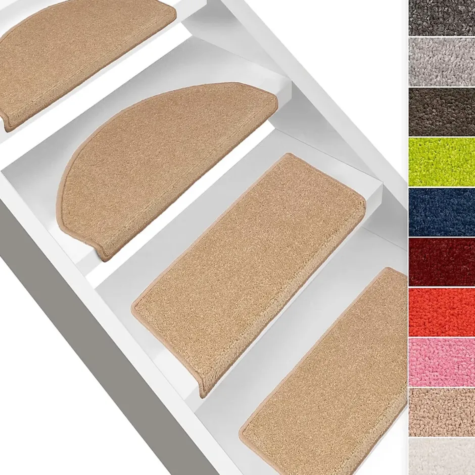 Tapis d’escaliers « Dynasty Velours » – semi-circulaires ou carrés Avec le tapis d’escaliers « Dynasty Velours », vous pouvez protéger vos escaliers de l’usure et des dommages de manière efficace et attrayante. Les protège-escaliers chics créent non seulement une atmosphère chaleureuse dans la cage d’escaliers, mais assurent également un sentiment agréable et sûr lors de la montée des marches. Grâce à leur surface caractéristique en velours pelucheux, les tapis d’escaliers offrent à la plante des pieds non seulement une surface antidérapante, mais aussi une petite unité de chouchoutement à chaque changement de sol. Fabriqué en Allemagne et de première qualité, le tapis de marche est résistant à l’usure, ce qui en fait une protection idéale des marches dans les espaces de vie. La stabilité et la meilleure tenue possible – même sur des marches en bois arrondies – sont assurées par l’angle stable associé à la bande adhésive de 40 mm de large sur la face inférieure des tapis de marche. La bordure de couleur assortie sur les bords des tapis de marche, quant à elle, assure une finition soignée et la protection des bords. Et pour que les grandes et les petites marches puissent être équipées de protections d’escaliers parfaitement assorties, les tapis de marche en velours sont disponibles en version semi-circulaire et rectangulaire. Pour entretenir le protège-marches résistant, un passage occasionnel de l’aspirateur est généralement suffisant. Pour traiter les tâches plus tenaces, le tapis de marche peut être traité avec un produit de nettoyage adapté. Velours tapis de marche – caractéristiques du produit: Matériau : polypropylène Dimensions : (semi-circulaire et rectangulaire) : environ 65 x 23,5 cm Bord avant : environ 3,5 cm Hauteur du poil : environ 6,5 mm Hauteur totale : environ 8,5 mm Dossier : Feutre Robuste angle avec une bande adhésive de 40 mm de large Versions disponibles : demi-rond, carré Tapis Antistatique Absorbant les sons Respirant Cote de feu : Efl