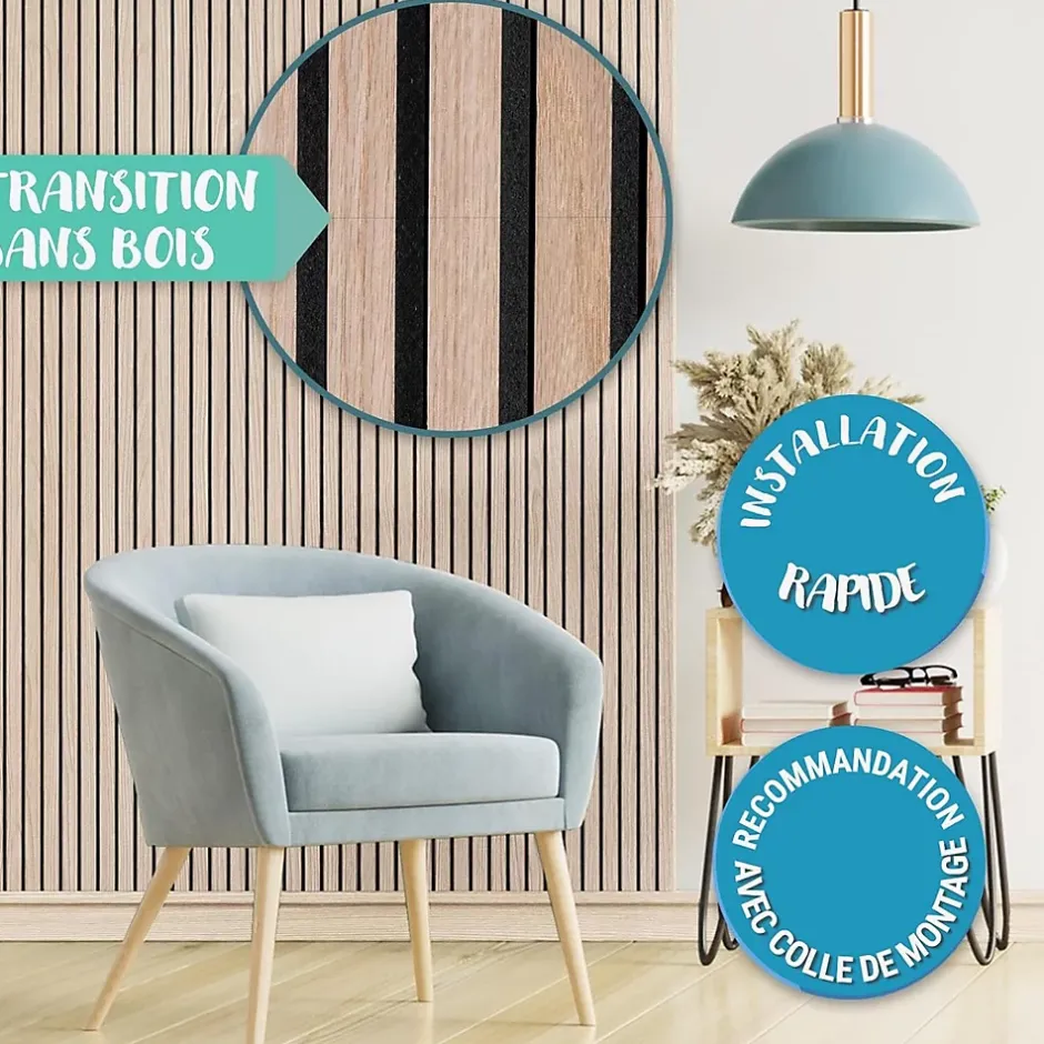 Panneau acoustique haut de gamme aspect bois : esthétique et fonctionnalitéAméliorez l’acoustique de vos pièces avec ce panneau acoustique haut de gamme au design bois naturel. Ses dimensions compactes de 60 x 60 x 2,1 cm le rendent idéal pour bureaux, salons ou studios.Designs et matériauxDisponible en trois finitions élégantes — Black Walnut, Red Oak et White Oak — ce panneau combine feutre de haute qualité, MDF robuste et placage bois véritable, assurant durabilité et absorption efficace des sons.Caractéristiques techniquesLargeur des lamelles : 2,7 cmEspacement entre lamelles : 1,3 cmÉpaisseur : 2,1 cmPoids : 2,7 kgCette configuration garantit une réduction optimale des bruits ambiants et une meilleure qualité sonore.Design élégant et polyvalentSon esthétique soignée s’intègre dans tous les styles d’intérieur. Ce panneau universel convient à divers espaces, apportant chaleur et style tout en améliorant l’acoustique.Installation facileGrâce à son feutre extra-épais et son design ingénieux, l’installation est simple et rapide. Fixez-le au mur en quelques étapes et profitez d’un confort sonore amélioré.DurabilitéLe placage en bois véritable confère une touche naturelle et raffinée. Les matériaux solides et la fabrication soignée assurent une grande résistance à l’usure quotidienne.Résumé des points forts :Matériaux : Feutre, MDF, bois véritableDimensions : 60 x 60 x 2,1 cmAbsorption acoustique optimaleFinitions : Black Walnut, Red Oak, White OakMontage facileRobustesse et design élégantCe panneau acoustique allie qualité sonore, style et longévité, idéal pour un intérieur moderne et confortable.