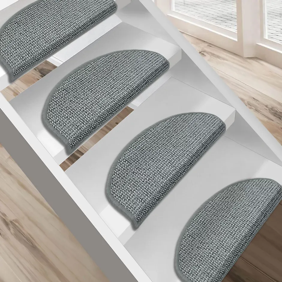 Matelas d’escaliers « Carlton » Carlton, les tapis d’escaliers chinés et résistants, offrent à vos escaliers la protection dont ils ont besoin contre l’usure et ont une belle apparence. L’angle adhésif extra large au dos des tapis d’escaliers les empêche de glisser et assure la sécurité lors de la montée d’escaliers. Disponibles dans de nombreuses couleurs attrayantes, vous n’aurez que l’embarras du choix pour choisir vos tapis d’escaliers personnels préférés. Les tapis de marche d’escaliers sont fabriqués en boucle de polypropylène résistant et sont bordés d’un fil de chaîne de couleur coordonnée. Cela garantit la stabilité dimensionnelle et une belle apparence. Les coussins d’escaliers en velours bouclé de haute qualité sont faciles à nettoyer, en cas de besoin. Matelas d’escaliers Carlton – Caractéristiques du produit: Matériau du mât : polypropylène Pile en boucle Dimensions : (semi-circulaire et rectangulaire) : environ 65×23,5 cm Bord avant : environ 3,5 cm Hauteur du mât : environ 5 millimètres Hauteur totale : environ 7,5 millimètres Poids total : environ 1150 g/m² Couleurs : Anthracite, beige, brun, gris clair, gris-beige Dossier : Action-Back (Anthracite, Brown), Textile (Beige, Grey-Beige, Light Grey) Robuste angle avec une bande adhésive de 40 mm de large Versions disponibles : demi-rond, angulaire Utiliser la classe 23