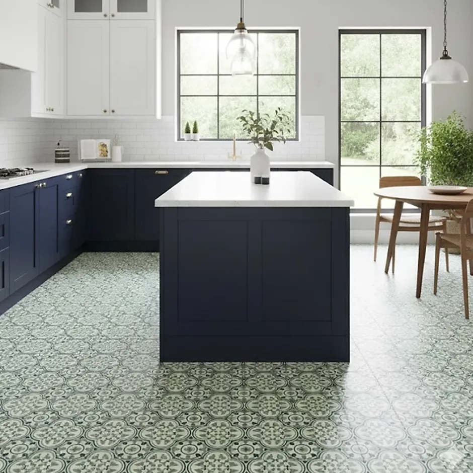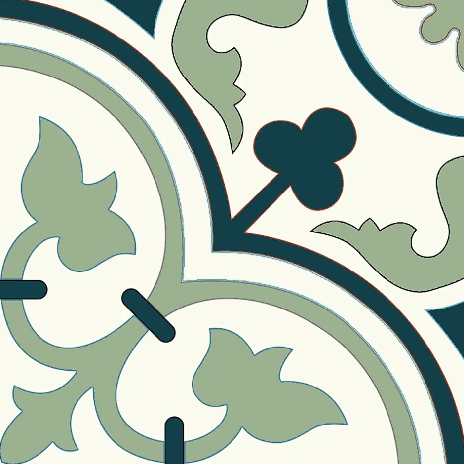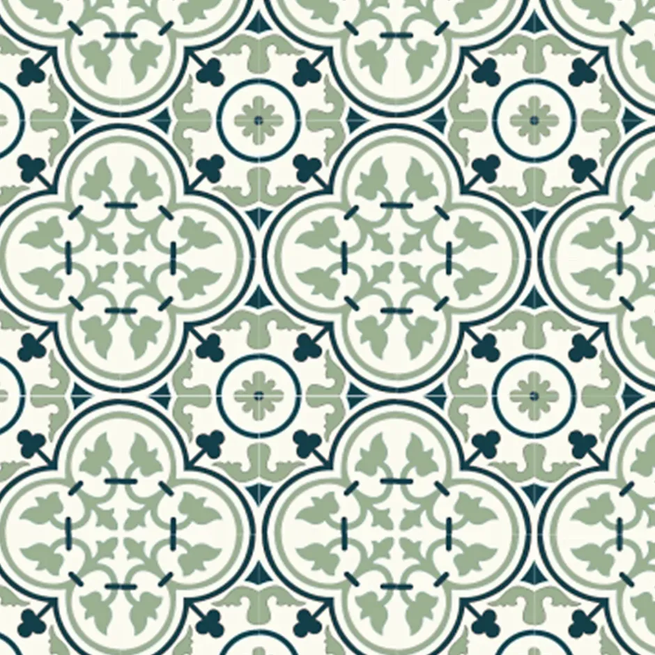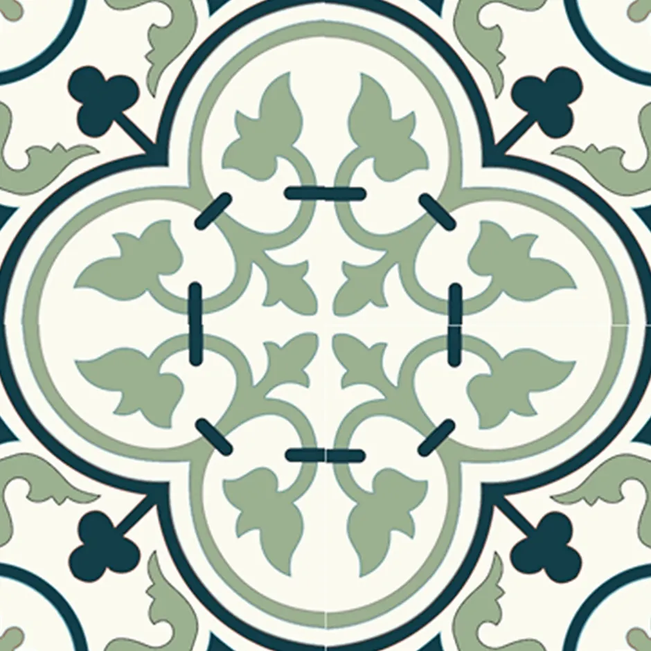 Carreaux de ciment de fabrication artisanale ; chaque carreau est fabriqué individuellement.Dim: 20 x 20 cm épais. 16 mm ; décor dans la masse épais. 5 mm.Couleurs : Blanc 48 / Bleu nuit 50 / Vert 72.Carreaux destinés pour revêtements de sols intérieurs : Cuisines, salles de bains, entrées, couloirs, salons, chambres, vérandas etc…Les carreaux de ciment sont naturellement poreux, il est conseillé de les imperméabiliser afin de les préserver de toutes taches et salissures.Conditionnement : carton de 14 pièces soit 0,56 m².Ajoutez une touche d’élégance intemporelle et de caractère artisanal à vos intérieurs avec ce magnifique carreau de ciment au motif inspiré des designs traditionnels.Ce carreau de ciment arbore un motif répétitif de type Quadrilobe imbriqué, créant une composition florale sophistiquée et un effet de rosace central lorsqu’ils sont assemblés.Le design utilise une palette de couleurs subtile dans un mariage harmonieux :Le vert sauge tendre pour les motifs floraux principaux.Un bleu nuit pour les contours et les petits motifs d’accentuation.Le fond blanc apporte une luminosité optimale.Le style rétro, Vintage, Art Déco, Méditerranéen ou Artisanat Traditionnel est parfait pour créer une ambiance boutique-hôtel ou maison de maître.