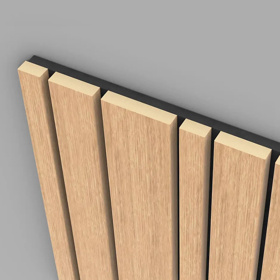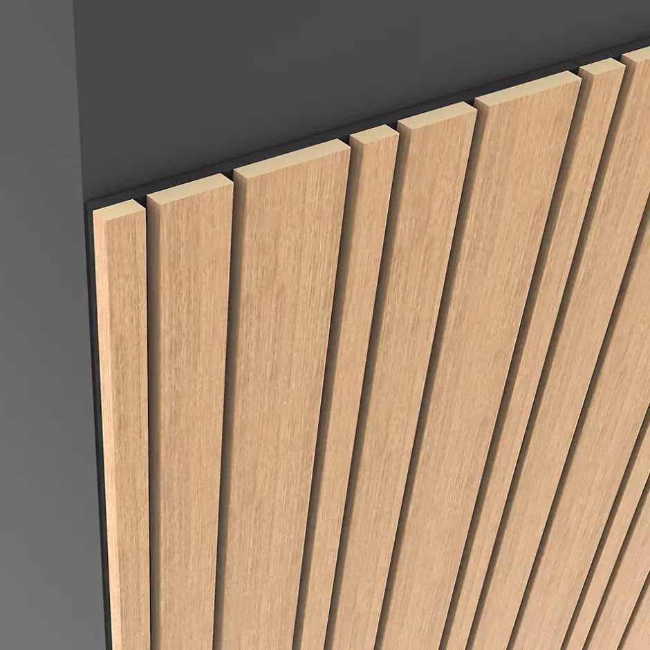 Panneau Boa en MDF fond noir, tasseaux décor chêne Saragosse L. 280 x l 90 cm, ép. 2,1 cm
