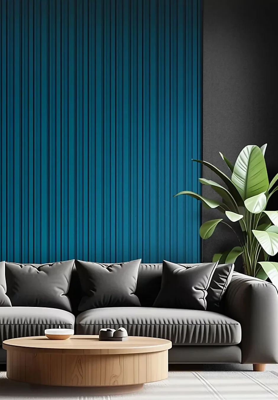 - Créez une atmosphère personnalisée avec ce revêtement mural bleu.