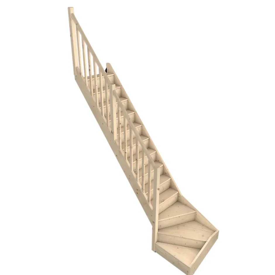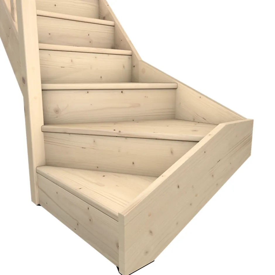 Escalier quart tournant gauche avec contremarche Fortia épicéa coloris naturel 13 marches Rapallo