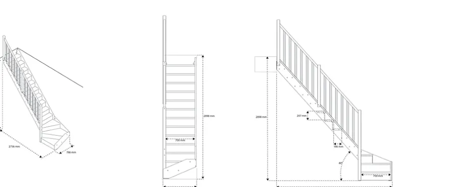 - Escalier quart tournant gauche avec contremarches et balustrade