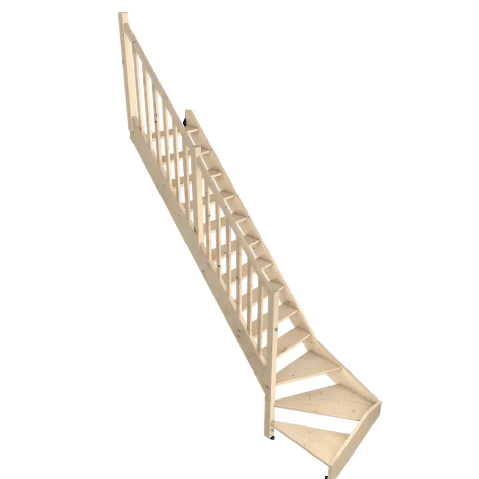 Escalier quart tournant gauche Fortia épicéa coloris naturel 13 marches Rapallo