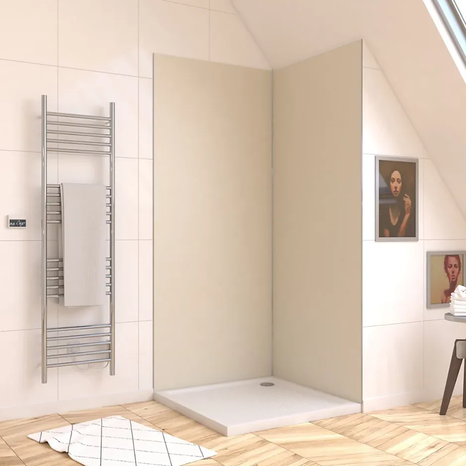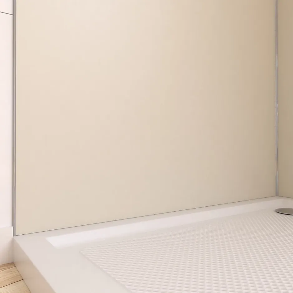 Pack de 2 panneaux muraux de salle de bains, ivoire avec profilés chromés, l.90+90 x H.210 x P.0,3 cm, Galedo Alucolors
