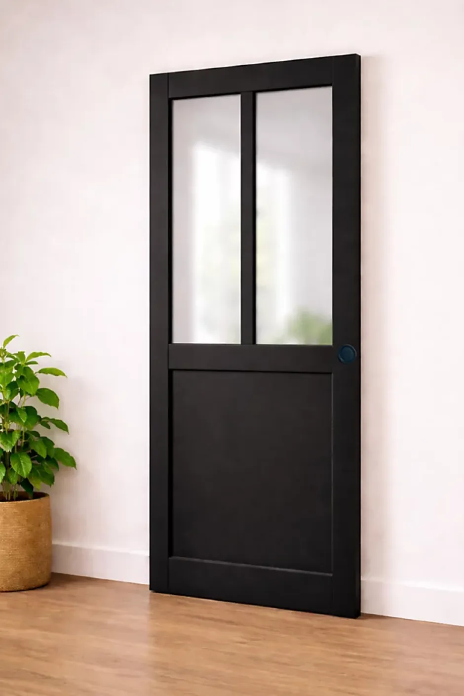 Porte coulissante Atelier Noir H204 x L63 avec coquilles noiresLa porte coulissante Atelier Noir est une solution elegante et contemporaine pour structurer vos espaces interieurs avec caractere. Fabriquee en MDF enrobe noir et conçue en France, elle est equipee d’un vitrage clair transparent de 4 mm, laissant passer la lumiere tout en affirmant un style atelier moderne.D’une dimension de H 204 x L 63 cm, cette porte dispose d’un ouvrant de 40 mm d’epaisseur, garantissant robustesse et stabilite. Elle est dotee d’un rainurage pour le guidage de l’ouverture coulissante, assurant un coulissement fluide. Deux coquilles noires sont posees sur la porte, offrant une prise en main discrete et parfaitement assortie a la finition.Cette porte est compatible avec un systeme coulissant vendu separement. Conçue exclusivement pour un usage interieur, elle doit etre installee dans un espace chauffe et isole, afin de garantir sa durabilite et ses performances.