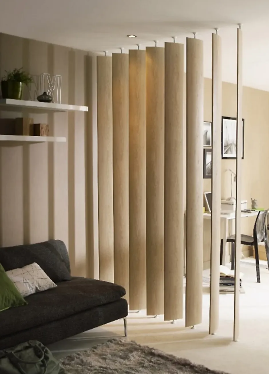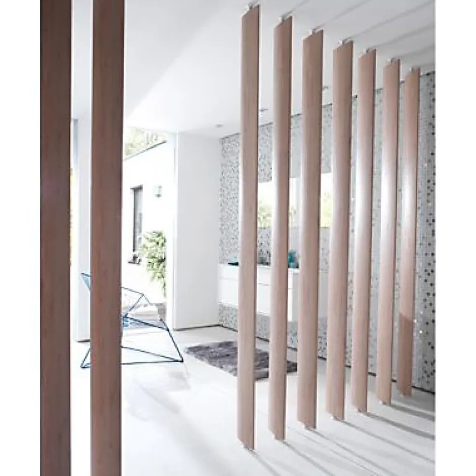 Envie de créer un bel espace de vie modulable dans votre intérieur ? Ces lames décoratives orientables Ella sont la solution idéale pour délimiter facilement votre pièce, sans entreprendre de gros travaux. Leur pose sans perçage et leurs vérins réglables facilitent leur installation.