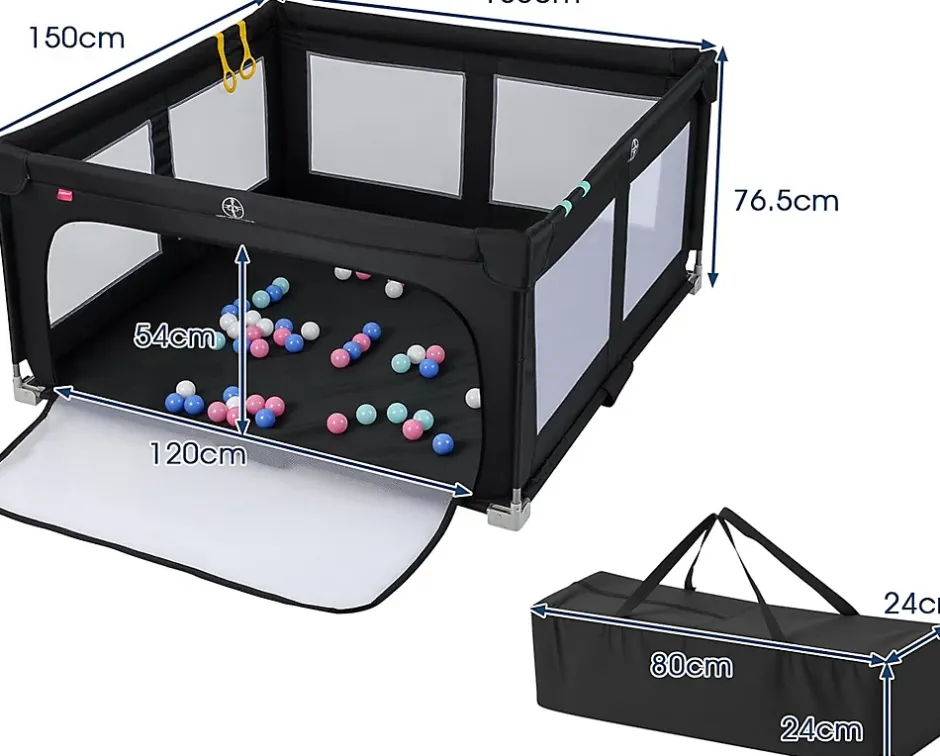 - Ce grand parc pliable mesure 150 x 150 cm et offre un espace spacieux et sûr pour que bébé puisse ramper, se tenir debout et jouer librement. Conçu pour les enfants jusqu’à 3 ans.