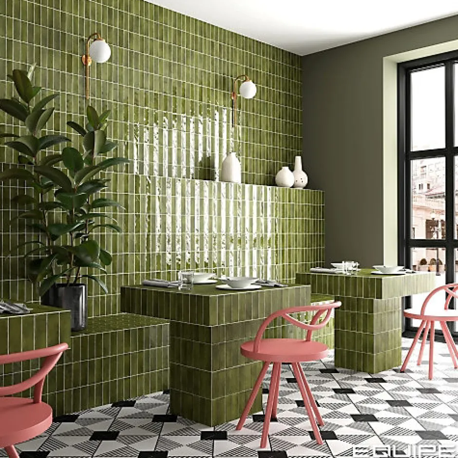 Gioia Materia Carrelage Effet Zellige Vert COLO Gloss 5×15 vert – Les Carreaux de Jean