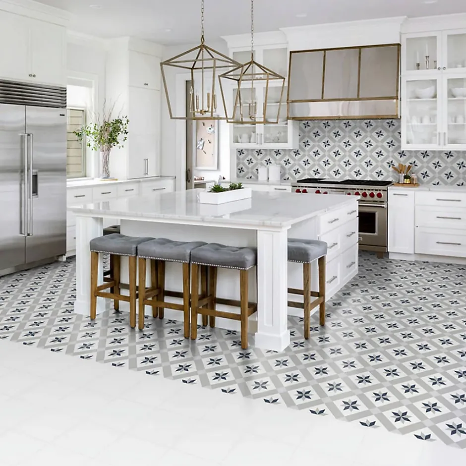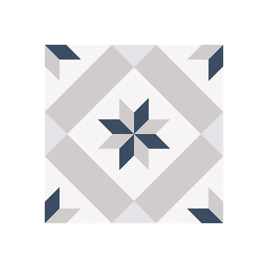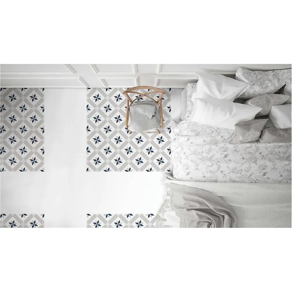 Couleurs : bleu, amande et blancFormat : 25x25cmÉpaisseur : 0,8cmFinition : Mat Effet : Carreau Ciment ColoréApplication : sol et mur / intérieur RECOMMANDATION : prévoir un volume de 10% ou 15% supplémentaire (pose droite ou diagonale) par rapport à votre surface pour les pertes liées aux coupes et au calepinage.
