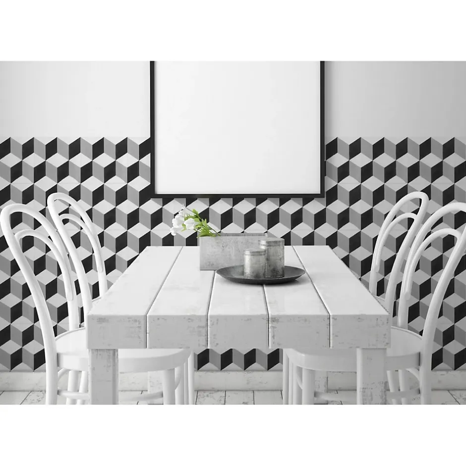 De la couleur uni au motif classique ou traditionnel en passant par des motifs orientaux ou bien des designs modernes, le grès cérame se met à l’heure du carreau ciment. Très tendance, il amène une touche d’authenticité et de fantaisie sur votre sol ou mur. Vous pouvez désormais opter pour une base grès cérame pour ce produit, l’avantage étant son caractère non poreux et son prix moins élevé que le carreau ciment traditionnel.Couleurs : gris moyen, noir et blancFormat : 25x25cmÉpaisseur : 0,8cmFinition : Mat Effet : Carreau Ciment Coloré / motif cube 3DApplication : sol et mur / intérieur RECOMMANDATION : prévoir un volume de 10% ou 15% supplémentaire (pose droite ou diagonale) par rapport à votre surface pour les pertes liées aux coupes et au calepinage.