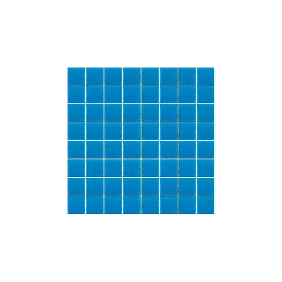 Couleur : Bleu turquoise (Nansa) / bleu foncé (Ason) / bleu pâle (Deva) / Bleu (Ebro) / bleu vert (Saja) / blanc cassé (Pas) / Crème (Cares)Format : carré 2,3×2,3cm (sur trame 33,3×33,3cm) et 3.8×3.8cm (sur trame 32x32cm)Épaisseur : 0,4cmSupport : trame colléeFinitions : brillant / antidérapant classe 3