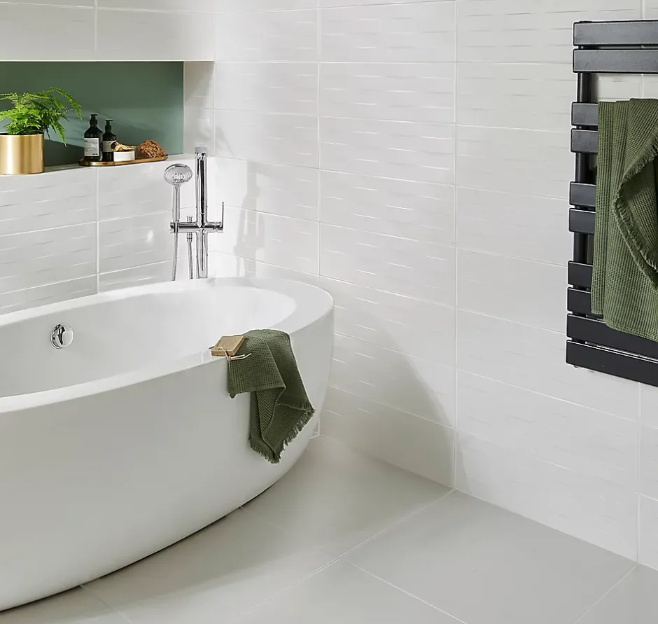 - Vous pouvez poser ce carrelage en mur complet ou l’accorder à un carrelage lisse pour une pièce unique
