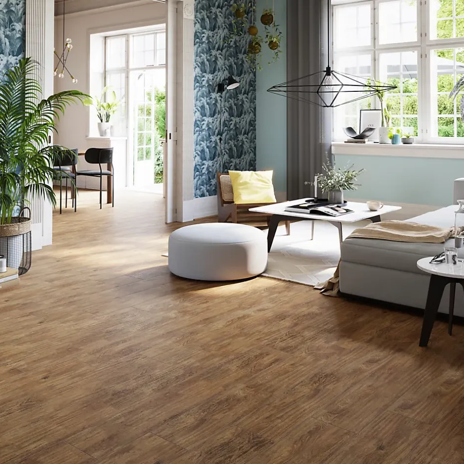 Carrelage sol et mur aspect bois miel L.120 x l.20 cm x ép.9 mm – lot de 5, GoodHome Antic Rustic
