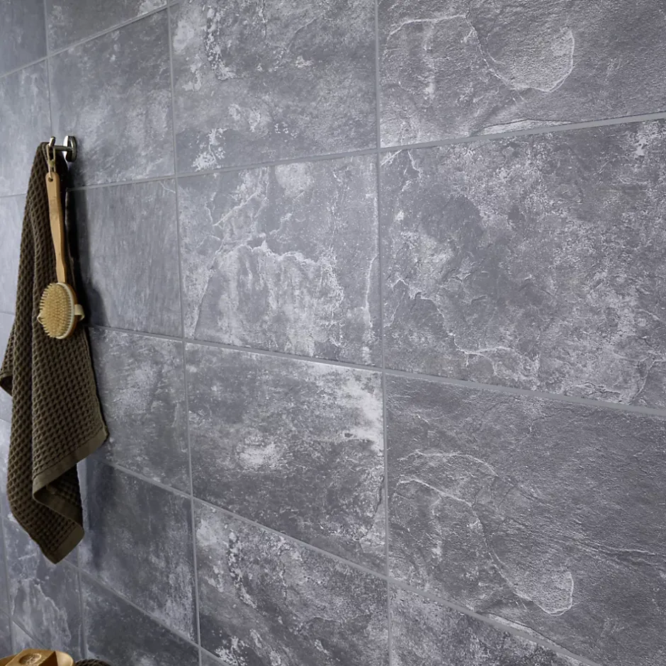 Carrelage sol intérieur anthracite aspect ardoise 30 x 60 cm Shaded