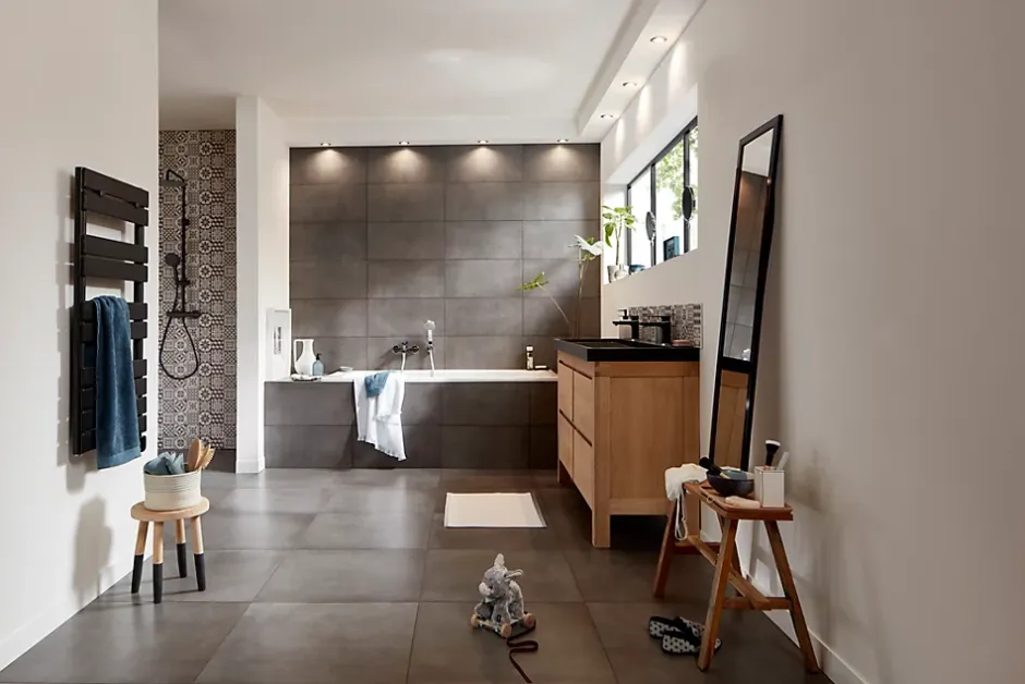 Carrelage sol anthracite 30,7 x 61,7 cm Konkrete