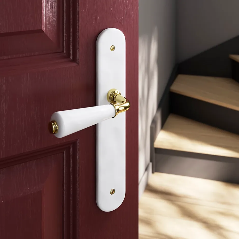 Ensemble poignée sur plaque Droit GoodHome Porcelaine Vras blanc L.115mm x l.45mm entraxe 195mm