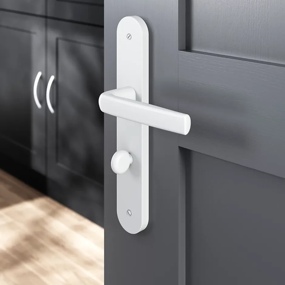 Ensemble poignée sur plaque Incurvé à condamnation GoodHome Primel mat blanc L.126mm x l.40mm entraxe 195mm