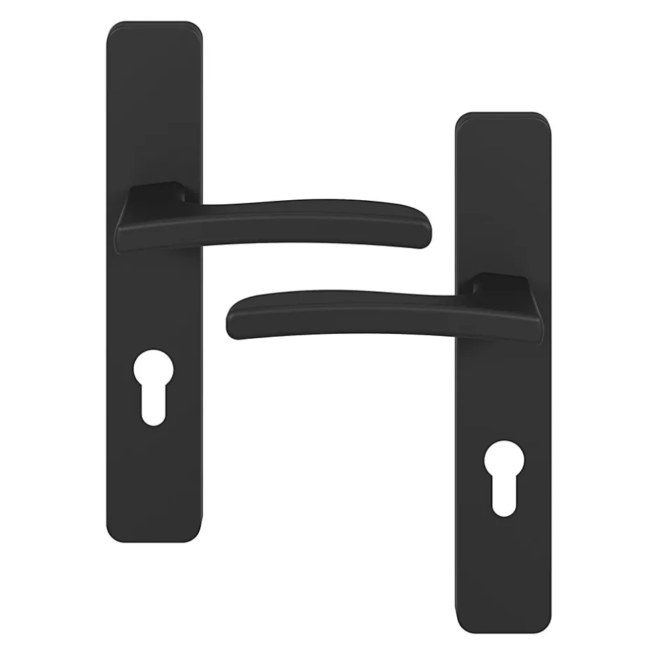 Ensemble poignée sur plaque rectangulairecylindre GoodHome Irvil effet nickel mat noir L.126.5mm x l.42mm entraxe 165-195mm